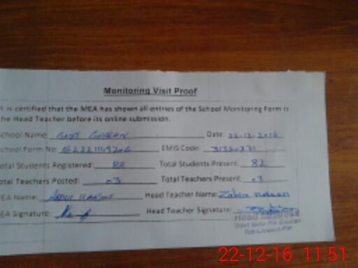 | Attendance Register | Head Teacher | MEA with School | Visit Proof |