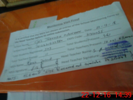 | Certified that this School was Inspected by the Undersigned MEA/DMO Today and the Information Stated Above is as Per Record. | |||||
