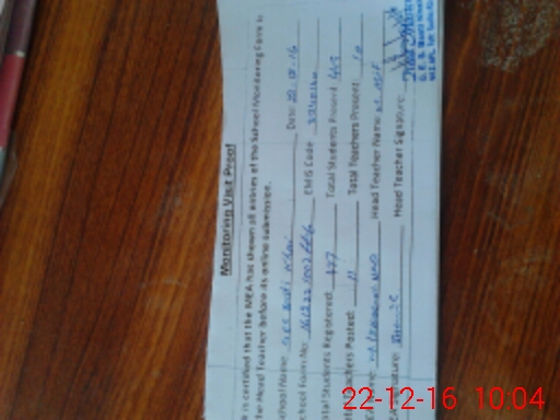 | Monitoring Date: 22-12-2016 | Start Time: 22-12-2016 09:47 AM | End Time: 22-12-2016 10:13 AM | Name of MEA: Mu**** Iz**** UlHa**** | |