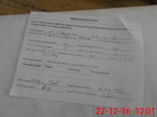 | Attendance Register | Head Teacher | MEA with School | Visit Proof |