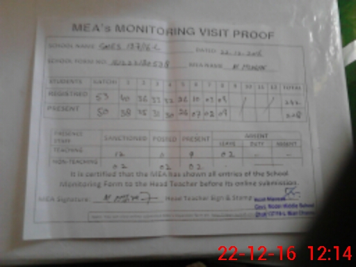 | Certified that this School was Inspected by the Undersigned MEA/DMO Today and the Information Stated Above is as Per Record. | |||||