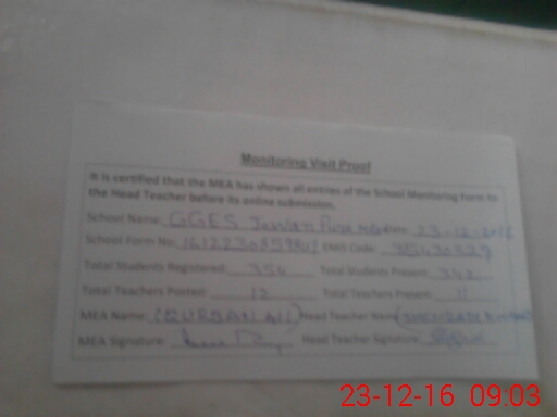 | Certified that this School was Inspected by the Undersigned MEA/DMO Today and the Information Stated Above is as Per Record. | |||||