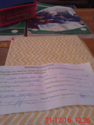 | Attendance Register | Head Teacher | MEA with School | Visit Proof |