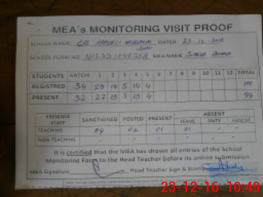 | Certified that this School was Inspected by the Undersigned MEA/DMO Today and the Information Stated Above is as Per Record. | |||||