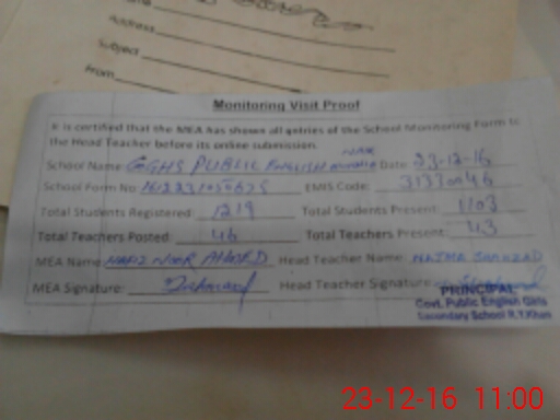 | EMIS Code: 31330046 | Name of School: GGHS PUBLIC ENGLISH MOHALLA CH. NAIKE | |||