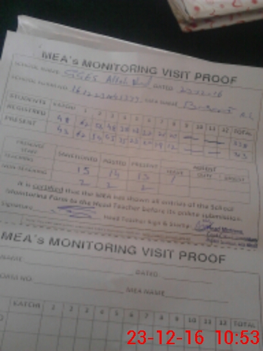 | Attendance Register | Head Teacher | MEA with School | Visit Proof |