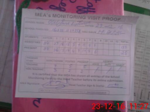 | Attendance Register | Head Teacher | MEA with School | Visit Proof |