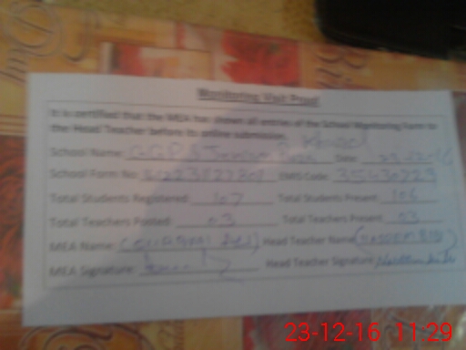| Attendance Register | Head Teacher | MEA with School | Visit Proof |