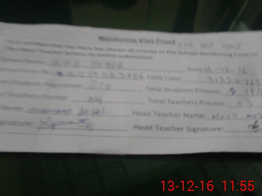 | Certified that this School was Inspected by the Undersigned MEA/DMO Today and the Information Stated Above is as Per Record. | |||||