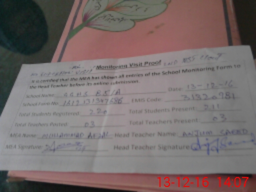 | Certified that this School was Inspected by the Undersigned MEA/DMO Today and the Information Stated Above is as Per Record. | |||||
