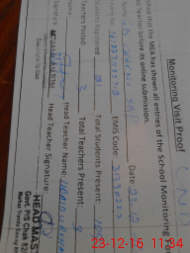| EMIS Code: 31330223 | Name of School: GPS CHAK NO. 82/P | |||
