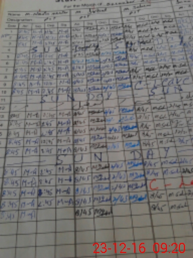 | Monitoring Date: 23-12-2016 | Start Time: 23-12-2016 09:08 AM | End Time: 23-12-2016 10:00 AM | Name of MEA: Mu**** Ja**** An**** | |
