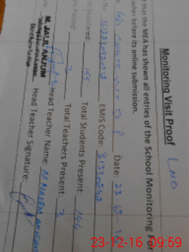 | Certified that this School was Inspected by the Undersigned MEA/DMO Today and the Information Stated Above is as Per Record. | |||||