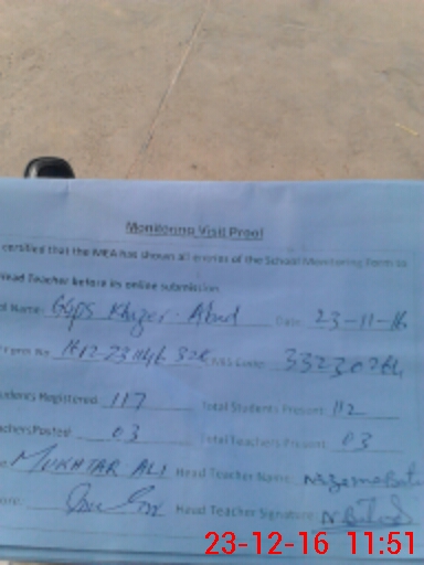 | EMIS Code: 33230667 | Name of School: GGPS KHIZAR ABAD | |||