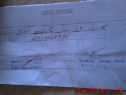 | Attendance Register | Head Teacher | MEA with School | Visit Proof |