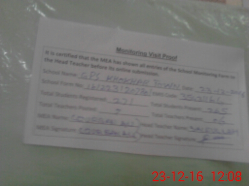 | Certified that this School was Inspected by the Undersigned MEA/DMO Today and the Information Stated Above is as Per Record. | |||||