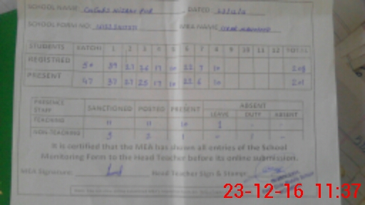 | Attendance Register | Head Teacher | MEA with School | Visit Proof |