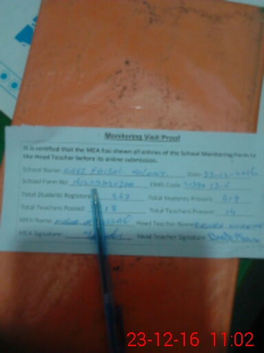 | Attendance Register | Head Teacher | MEA with School | Visit Proof |
