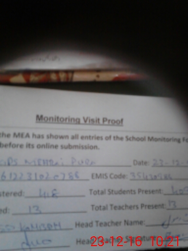 | EMIS Code: 35430984 | Name of School: GGPS MEHRAJ PURA | |||