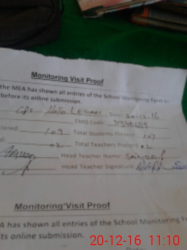 | Attendance Register | Head Teacher | MEA with School | Visit Proof |
