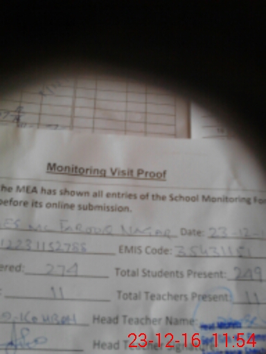 | Attendance Register | Head Teacher | MEA with School | Visit Proof |