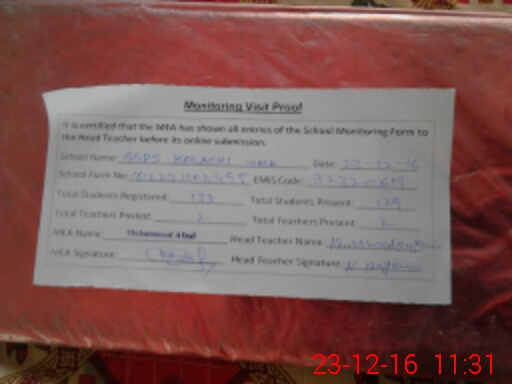 | EMIS Code: 32320619 | Name of School: GGPS KOLACHI WALA | |||