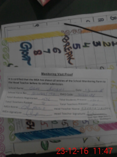 | Attendance Register | Head Teacher | MEA with School | Visit Proof |