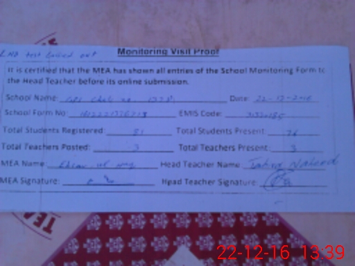| Attendance Register | Head Teacher | MEA with School | Visit Proof |
