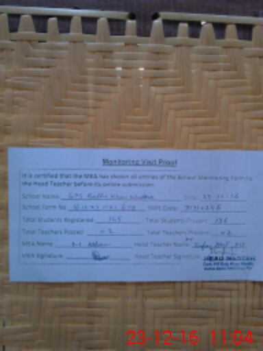 | Attendance Register | Head Teacher | MEA with School | Visit Proof |