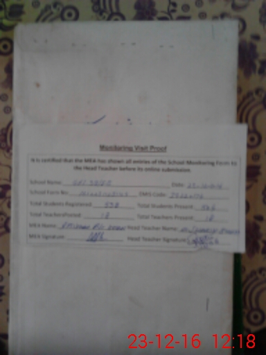 | Certified that this School was Inspected by the Undersigned MEA/DMO Today and the Information Stated Above is as Per Record. | |||||