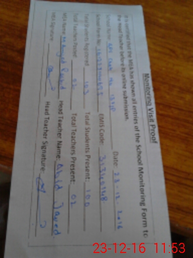 | Certified that this School was Inspected by the Undersigned MEA/DMO Today and the Information Stated Above is as Per Record. | |||||
