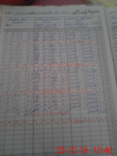 | CNIC | Full Name | Designation | R/C | Absence During Last Calender Month |