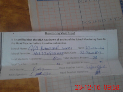 | Attendance Register | Head Teacher | MEA with School | Visit Proof |