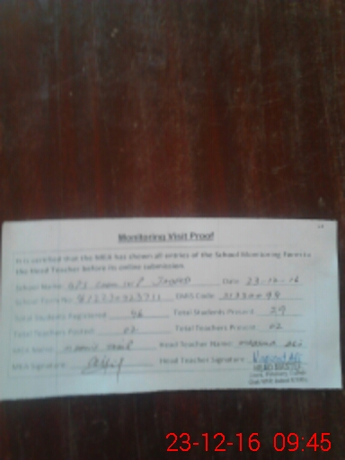 | Attendance Register | Head Teacher | MEA with School | Visit Proof |