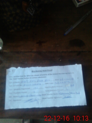 | Attendance Register | Head Teacher | MEA with School | Visit Proof |