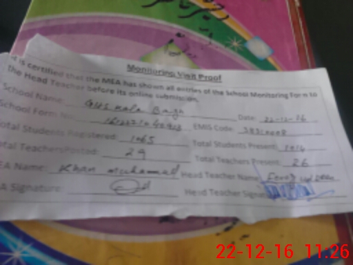 | EMIS Code: 38310008 | Name of School: GHS KALA BAGH | |||