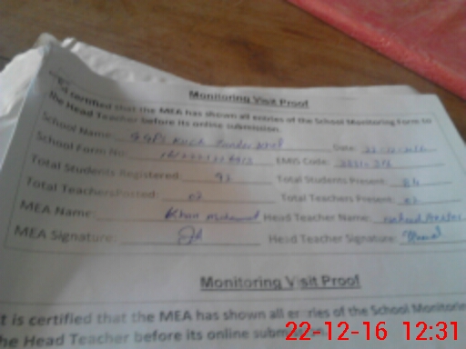 | Attendance Register | Head Teacher | MEA with School | Visit Proof |