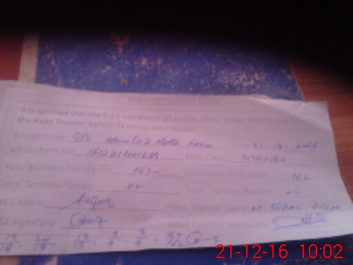 | Name: M.**** Designation: (School Headmaster's/Headmistress's) PST/PTC/JV Phone/Cell Number: 03**** |