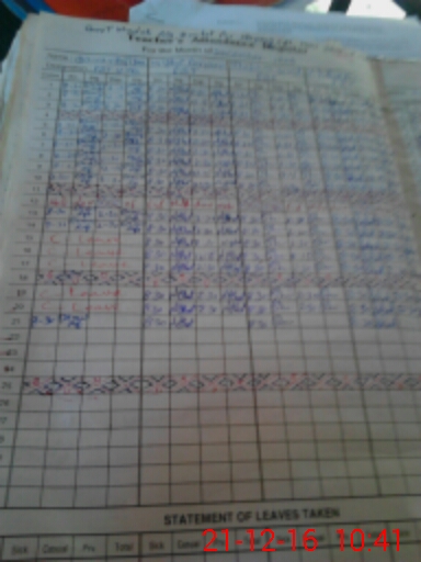 | CNIC | Full Name | Designation | R/C | Absence During Last Calender Month |