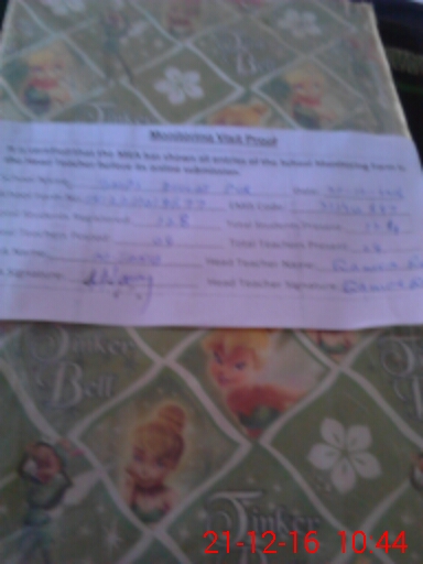| Attendance Register | Head Teacher | MEA with School | Visit Proof |