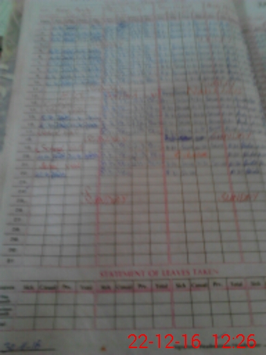 | CNIC | Full Name | Designation | R/C | Absence During Last Calender Month |