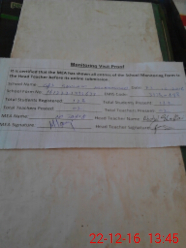 | Attendance Register | Head Teacher | MEA with School | Visit Proof |