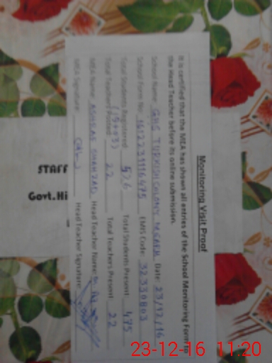 | Certified that this School was Inspected by the Undersigned MEA/DMO Today and the Information Stated Above is as Per Record. | |||||