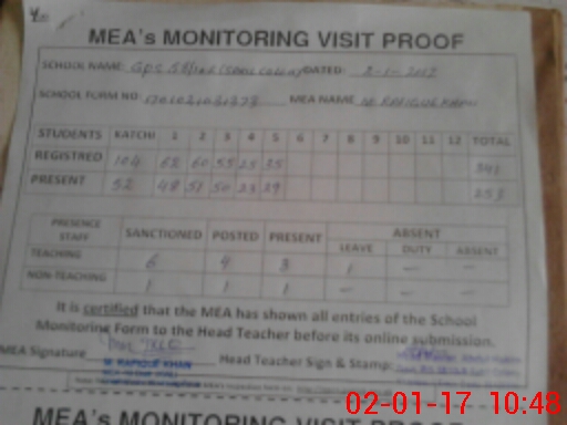 | Certified that this School was Inspected by the Undersigned MEA/DMO Today and the Information Stated Above is as Per Record. | |||||