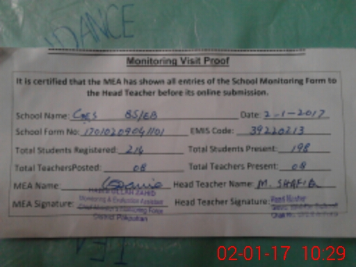 | Certified that this School was Inspected by the Undersigned MEA/DMO Today and the Information Stated Above is as Per Record. | |||||