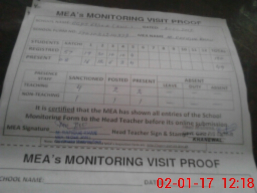 | Attendance Register | Head Teacher | MEA with School | Visit Proof |