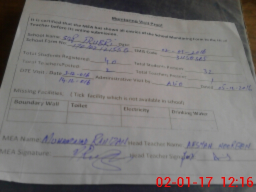 | Certified that this School was Inspected by the Undersigned MEA/DMO Today and the Information Stated Above is as Per Record. | |||||