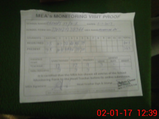 | Attendance Register | Head Teacher | MEA with School | Visit Proof |