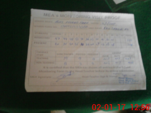 | Attendance Register | Head Teacher | MEA with School | Visit Proof |