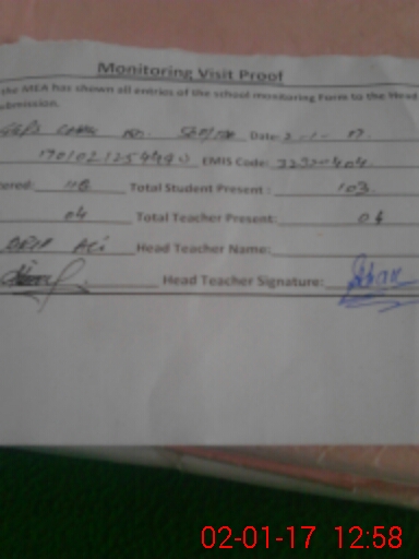 | Attendance Register | Head Teacher | MEA with School | Visit Proof |